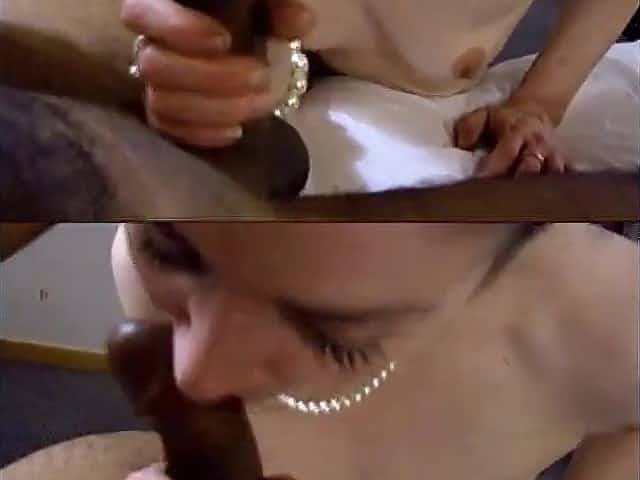 Cute giggly white girl sucks brown cock