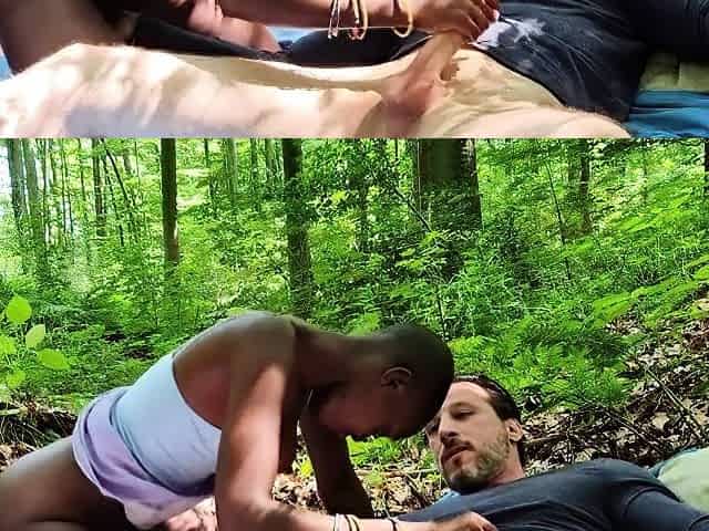cute African woman having interracial sex outside