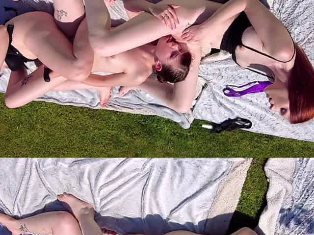 Red Haired Woman Is Having A Casual Threesome With Friends, In The Middle Of A Beautiful Day