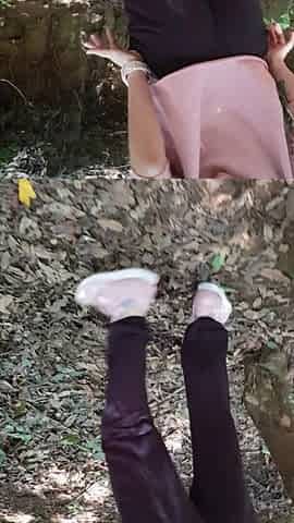 Mature woman outside comes with a bare ass.