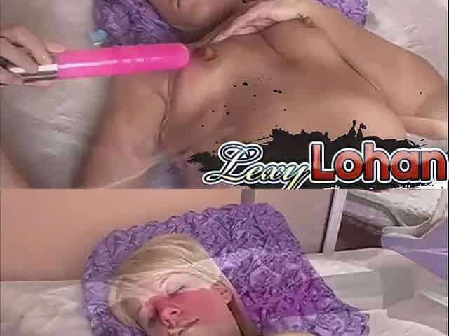 Lexi Lohan and lesbian babe show off big boobs and lick them