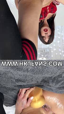 Hotkinkyjo with huge dildo from MrHankey anal & belly bulge