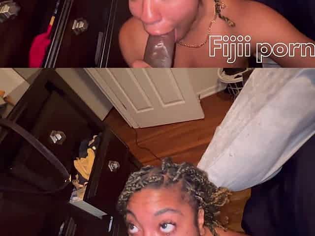Chocolate girl sucks a massive dick