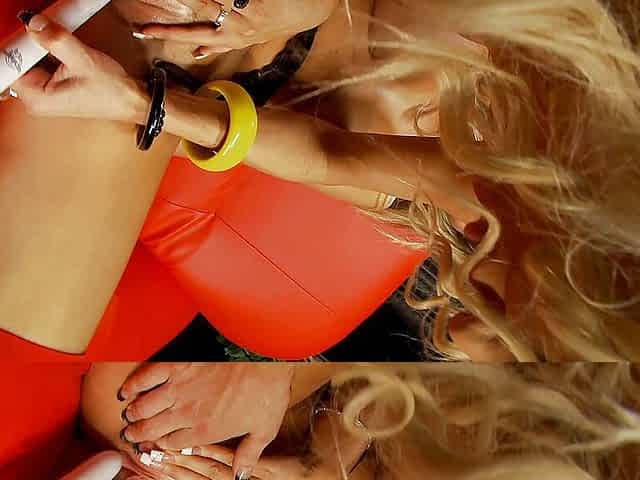 Busty blonde chic having lesbian sex with her best friend while on call with her boyfriend.