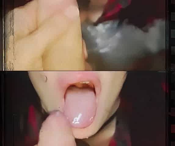 Filled the throat of a cute cutie and her boyfriend with goo