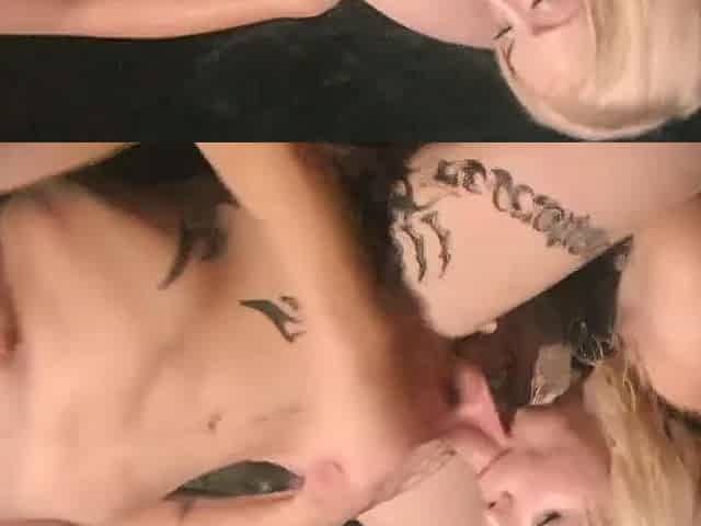 2 sexy tattooed bisex gals share a large shlong