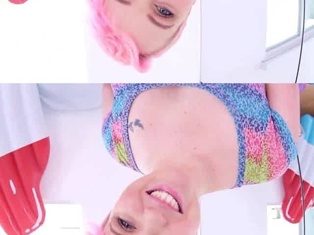 CAROLINE CROSS aka MILEY MAY Cute Cubby Golden-haired Coed Biggest Knob POV Fellatio and Cum Drink