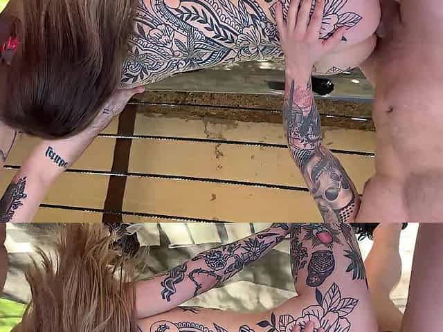 BIG TIT SEXY POOL TEACHER GIVES MASSAGE & FUCKS BI