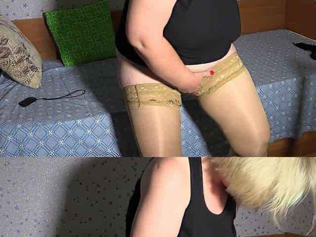 Gorgeous towheaded mature female masturbate on camera