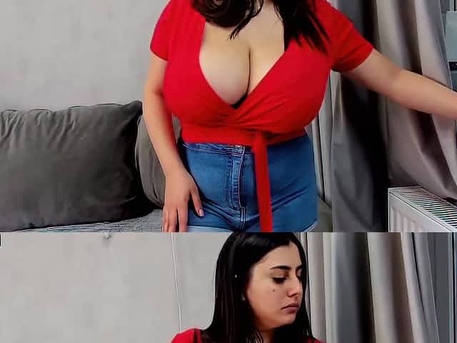 Carol - chubby BBW brunette with monster tits shows deep cleavage
