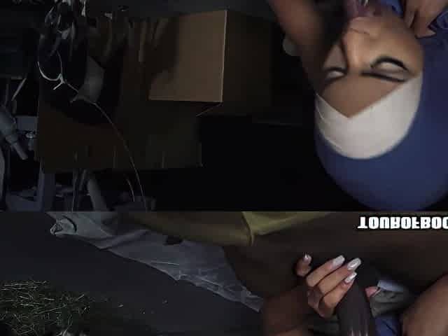 Large booty, Black woman is sucking a large, white dick as unfathomable as that babe can