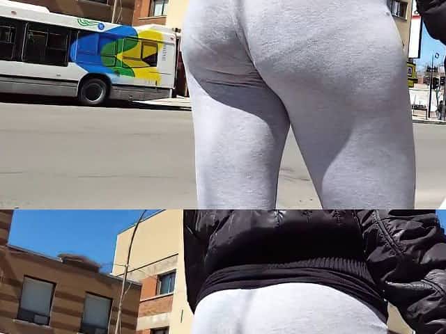 Jiggly booty candid light skin grey tights