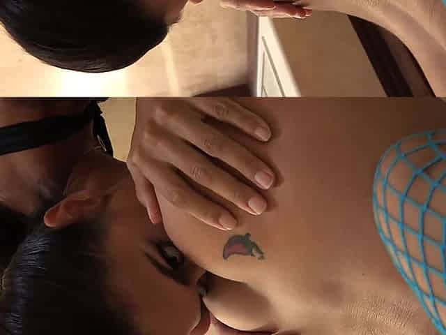 Horny latina lesbian sucking lips