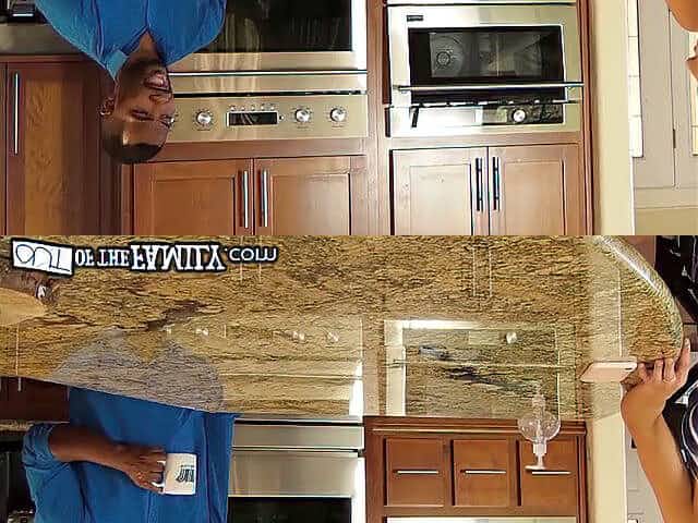 Busty blonde MILF sucks and fucks her teen stepson in a kitchen