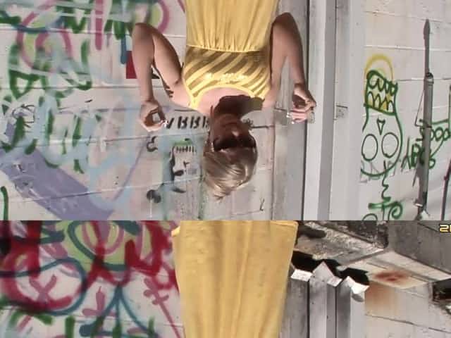 Look up her skirt and see a perfect shaved pussy in public