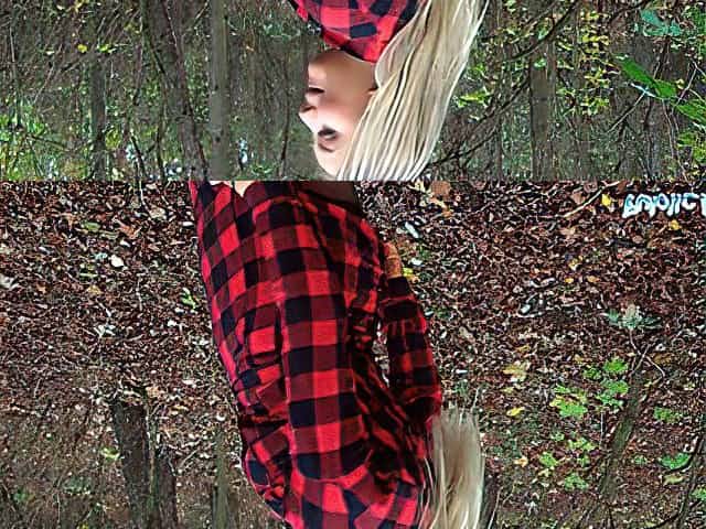 Beautiful Busty Blonde takes her clothes off in the woods before fucking
