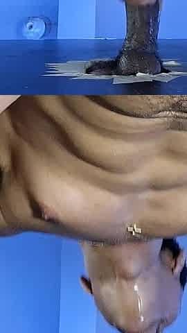 Hot Black cock fucking bareback through Gloryhole