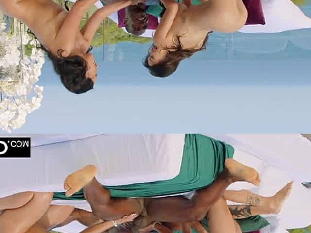 Brunette Babes share BBC - Vicki chase in interracial deepthroat threesome outdoors