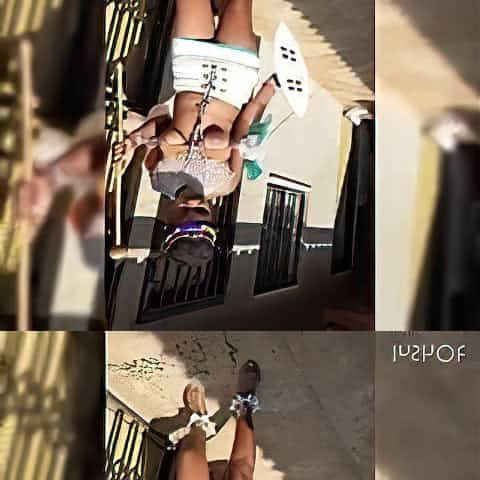 Topless African shy girl is filmed by some guy