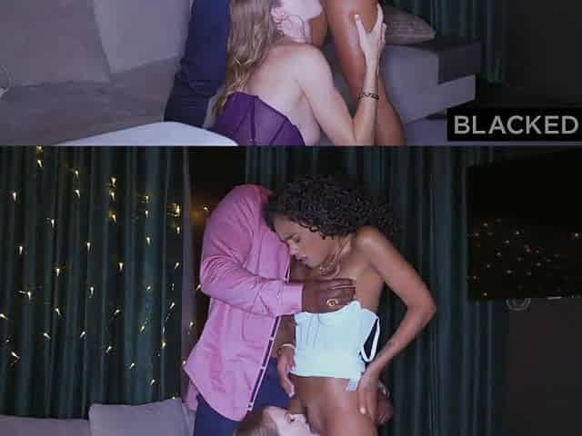 Busty Blonde and Naughty Ebony Share a White Cock in FFM Interracial