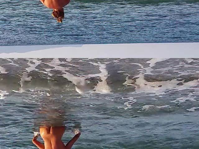 Wife walks around public beach fully undressed