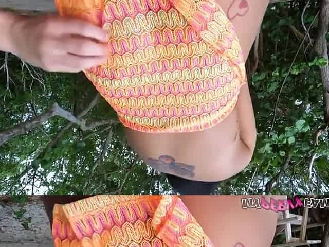Outdoors solo video of hot ass Ann Kelley teasing the camera