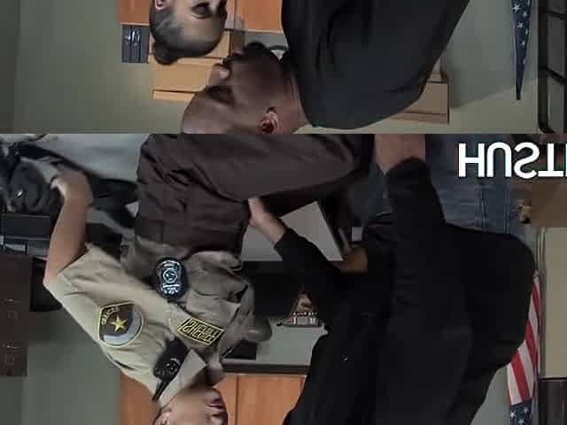 Policewoman Charity Bangs facialized in office interracial