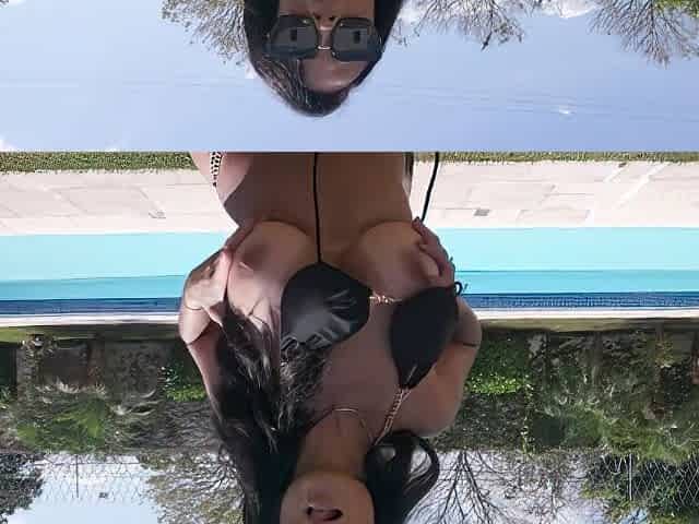 Ebony chick with sexy tan lines Grazy Moreno is licked near the pool