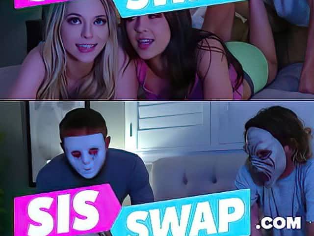 SisLovesMe - Sexy Stepsis and Friend Tag Team a Thick Cock