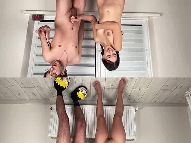 Hot babe pussyfucks and jerks brother in law