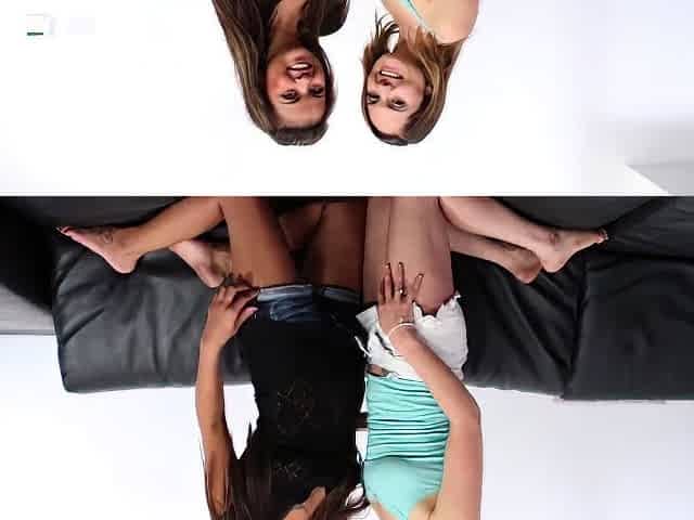2 enchanting girl pies Alaina Fox and Aurielee Summers are fond of rubbing their clits in the sofa