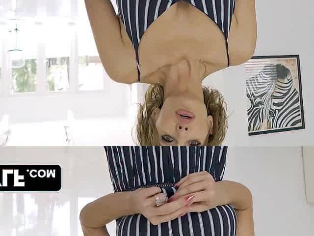My stepmom with huge big tits, nice big areolas and big nipples wants me to fuck her upside down