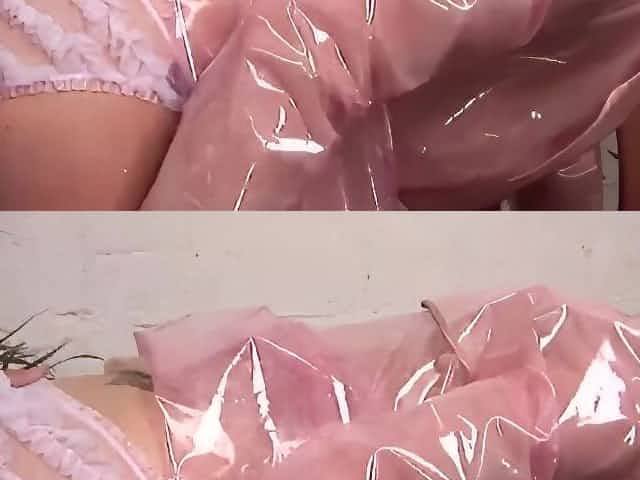 Blonde in latex railed