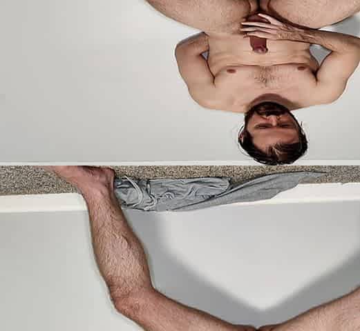 Solo gay dude enjoys stroking his large dick while home alone