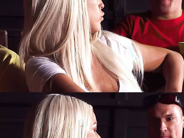 Horny blonbe busty babe Bridgette fucks hard in movie theater with group of strangers
