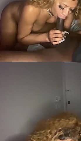 Ebony babe with perky tits gives head in homemade video - Blowjob