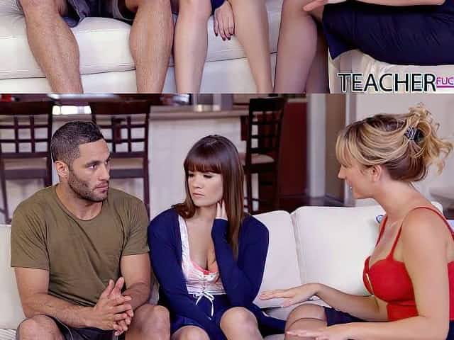 Hot Russian mom Kayla Green and her stepdaughter fuck handsome English tutor