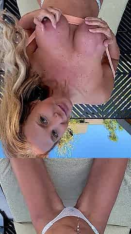 Stacy Jay hanging out by the pool in her new pink bikini makes boyfriend Jerry get real hard, and gives Stacy a rimjob