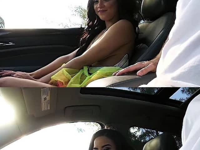 Juicy ass Skyler Luv with natural tits banging in auto