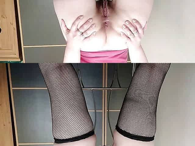 Stockings mesh butt plug juicy ass horny petite naughty sexwife, fingering big labia clitoris