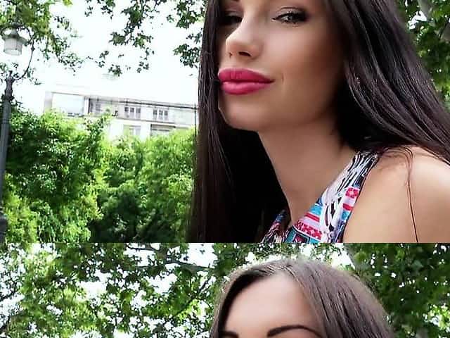 Beauty with huge lips banged in woods pov