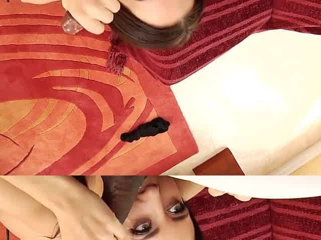 Big lips Latina wrapped around fat dick lying on her back close up POV
