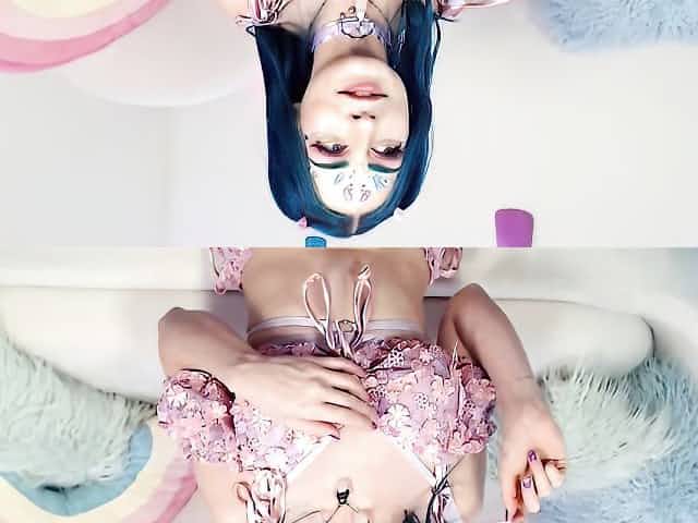 Awesome blue-haired model Jewelz Blu sucks her lovely sex toy