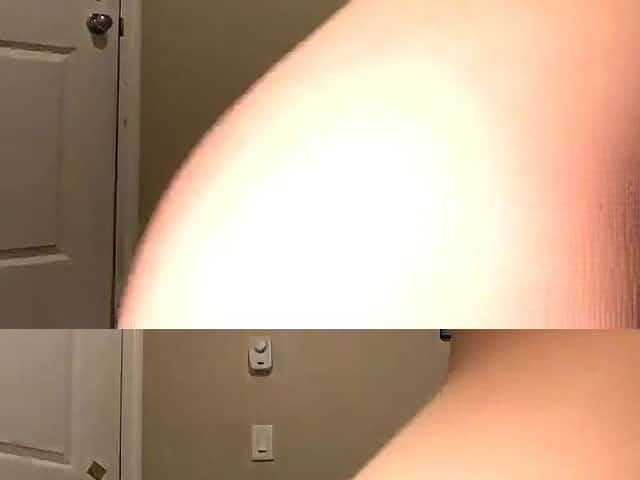 Hidden Camera in Fitting Room. Upskirt view on Naked Blonde with Big Tits