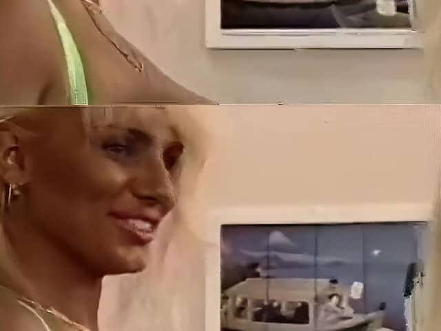 loola walks topless doing a squirt