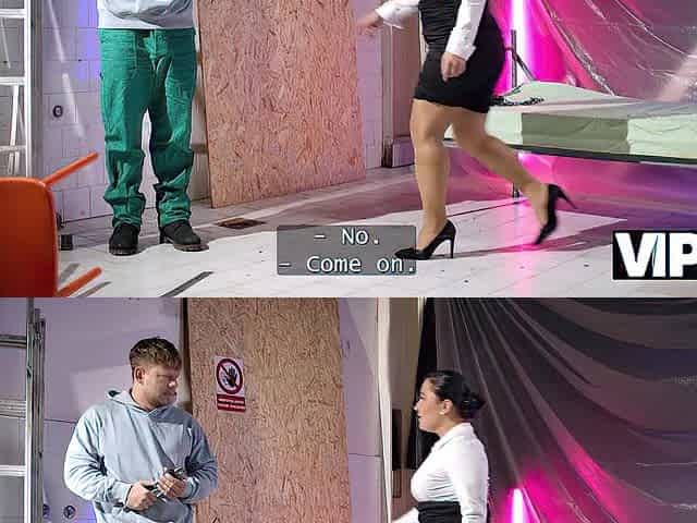 VIP4K. Older Mrs. Boss is masturbating during her lunch break and banging a stranger electrician