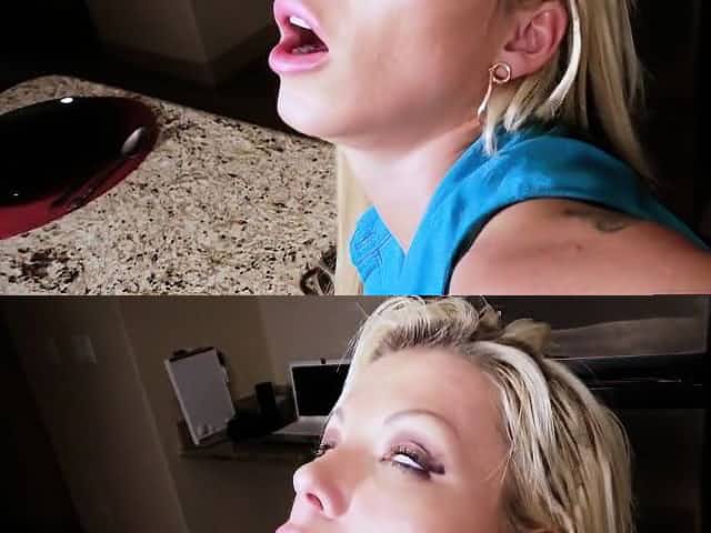 Busty blonde stepmom seduces stepson and gives him a blowjob