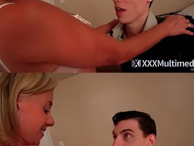 Hot blonde stepmother likes to tease her lucky stepson