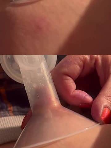 Amateur BREASTMILK pumping. Up close spray.