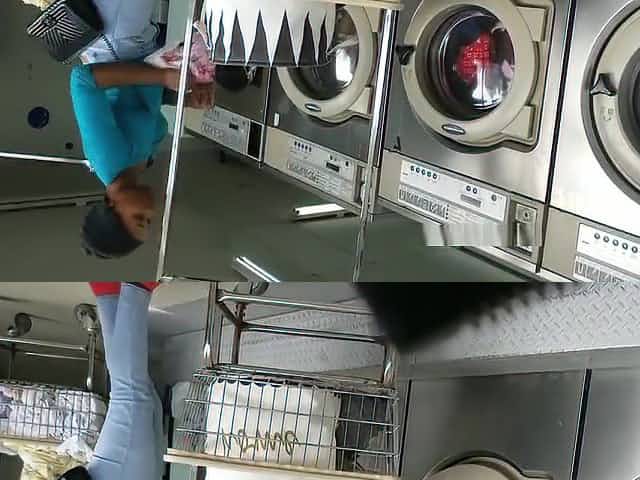 Laundromat Creep Shots 2 sluts with round asses and no bra